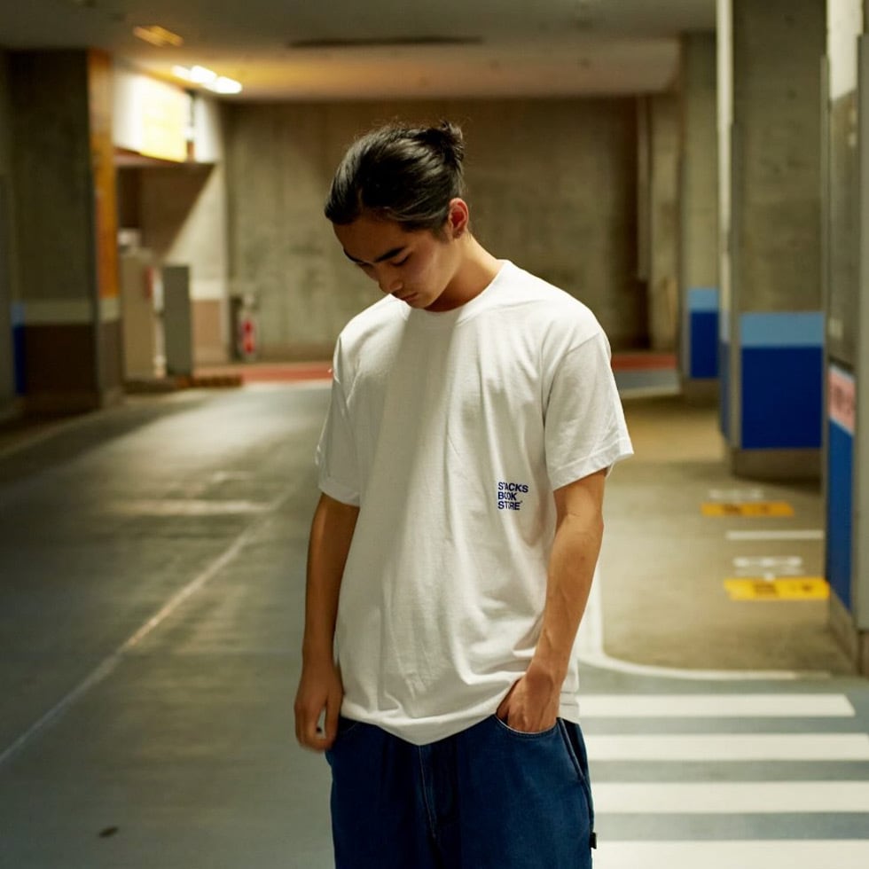 NYで活躍するアーティスト、Toya Horiuchiが手がけた、stacksのLogoをフロントにプリントしたLogo Tee。ロゴはNavy。