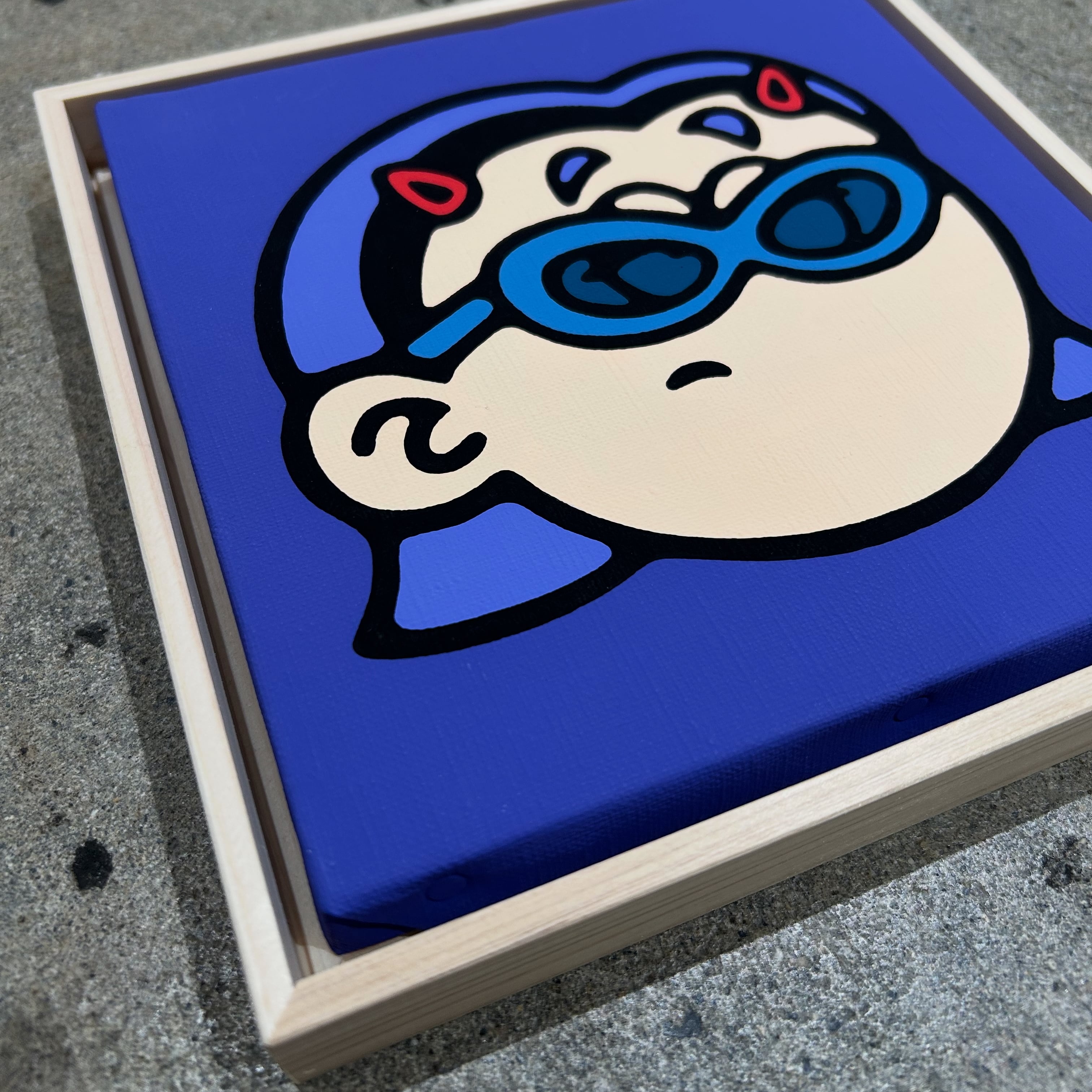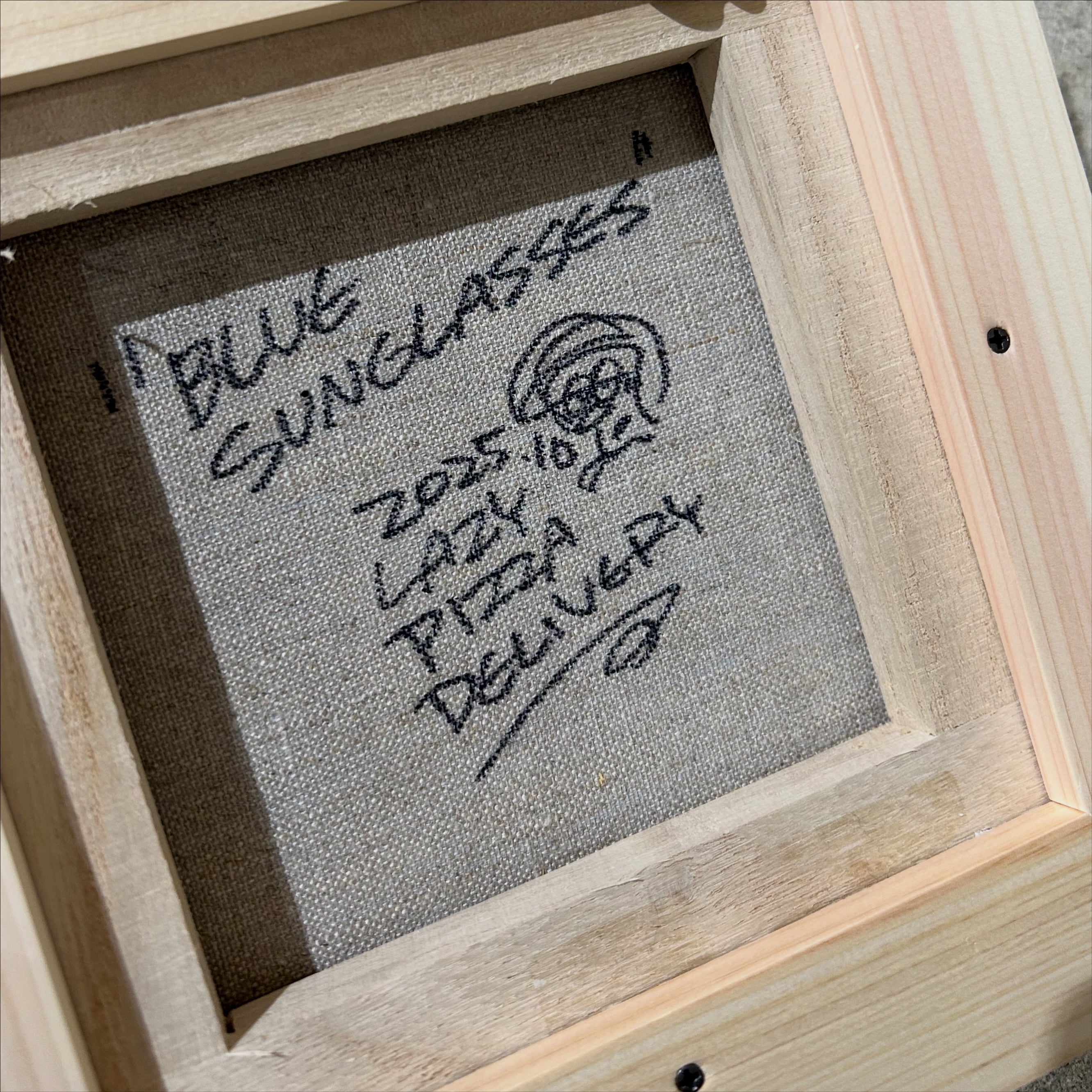 木製のフレーム付きのキャンバス作品。