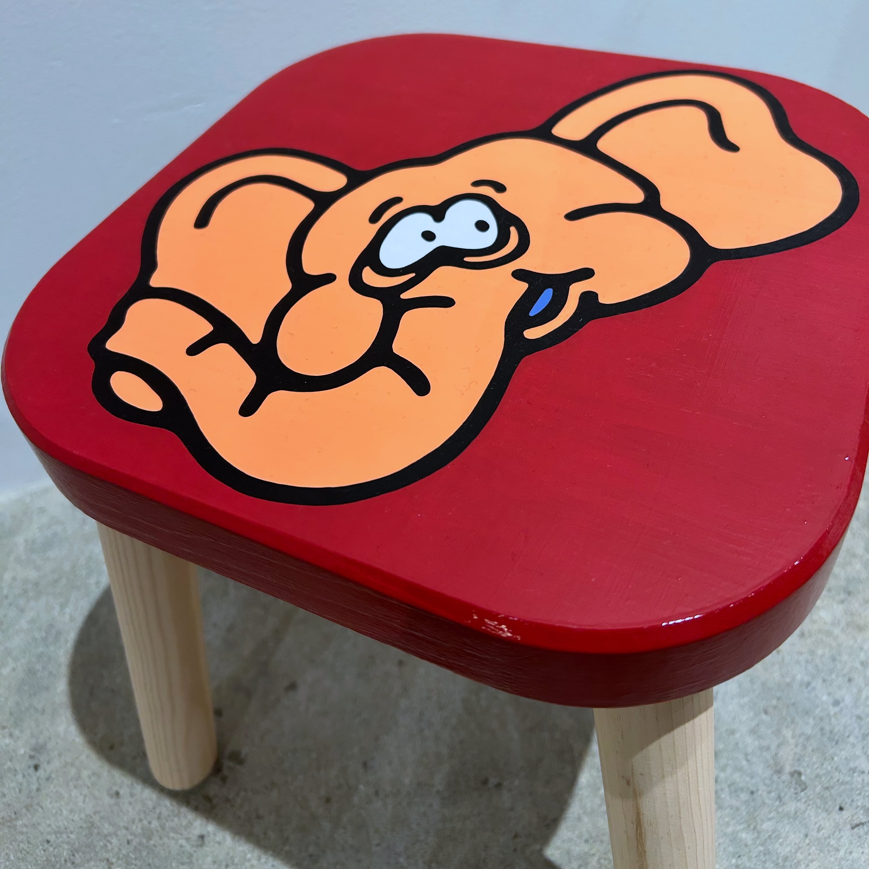 木製の椅子の座面に直接ペイントを施しています。