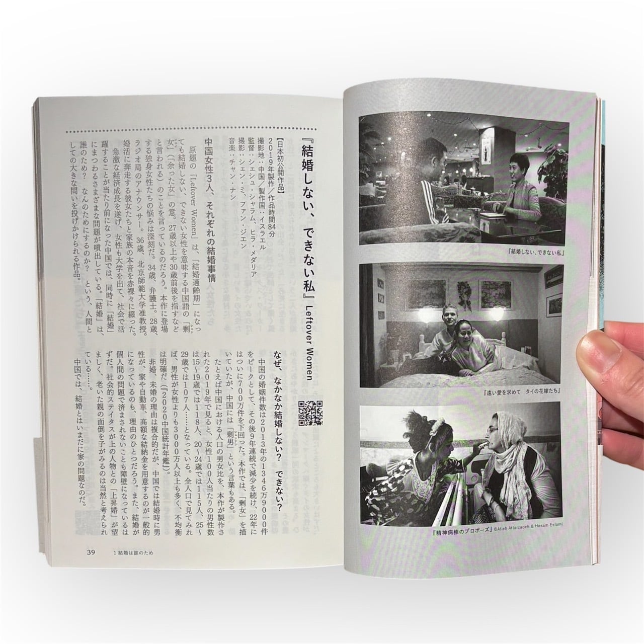 日本ではテロリストとして報道される人々の家族との生活、結婚観の押し付けに反発する中国の現代の女性たち、手作業で地雷を撤去する仕事、イスラエルの徴兵制度に抵抗する人々など、ほとんど報道されない人々の暮らしを知ることができます。